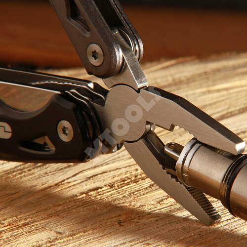 Features of the tool include: Ergonomic handle; Built in carabiner; Non locking knife; Non locking saw; Pliers; Wire cutters; Phillips screwdriver; Bottle opener As with all our products, this multitool is delivered in a water resistant and enduring packaging, which you can store your valuables in. Ideal as a gift.