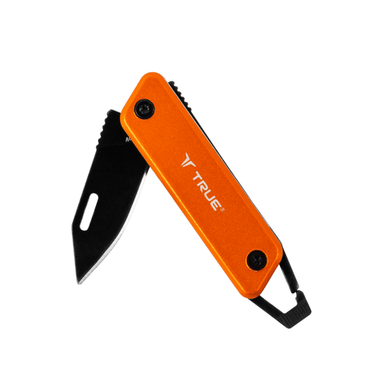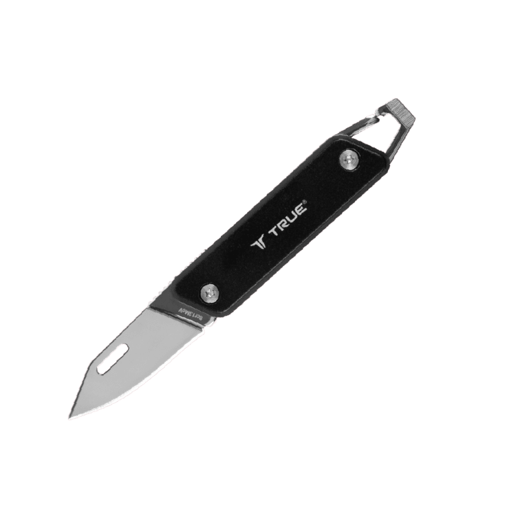 Modern Keychain knife is a compact knife with stylish, modern design. This perfectly sized knife features a carabiner clip to easily and quickly attach and remove from your keychain. The 1.5” clip point blade is crafted from 8Cr13MoV stainless steel in both a mirror and black oxidized finish. Modern Keychain knife is available in a choice of 3 colours